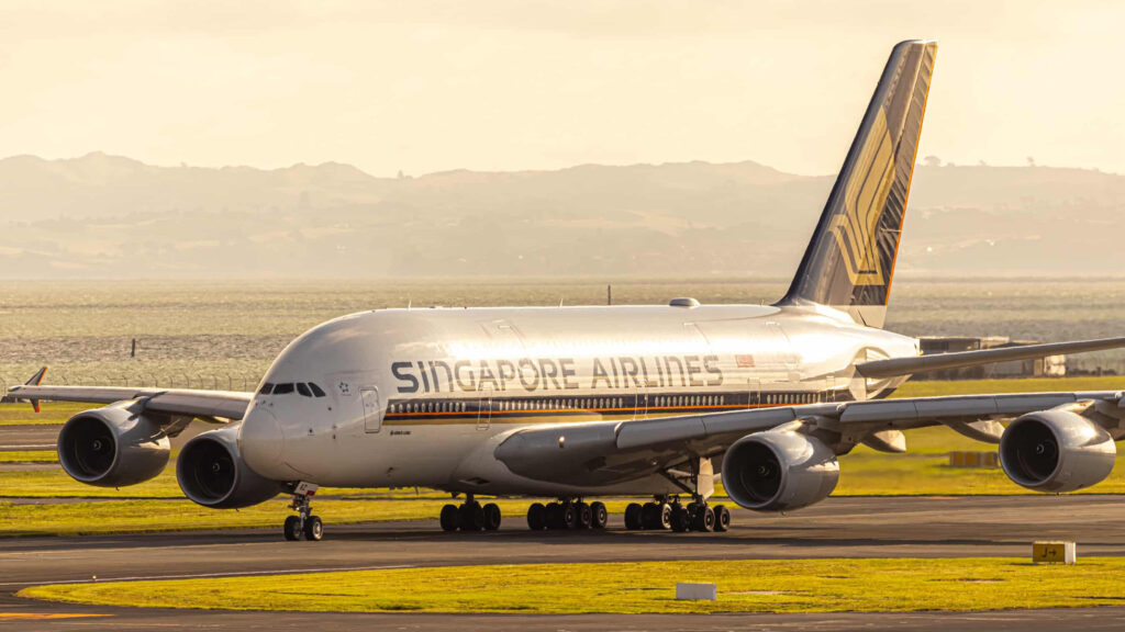 Singapore Airlines Airbus A380 Departing Auckland International Airport. Photo Credit Trey Goodare